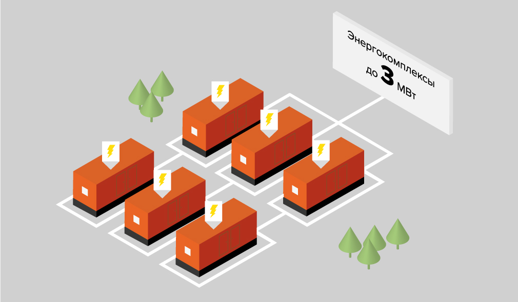 Полная линейка энергоэффективных дизельных электростанций, обеспечивающих широкий диапазон мощностей от 200 кВт до 3 МВт в составе энергокомплекса.